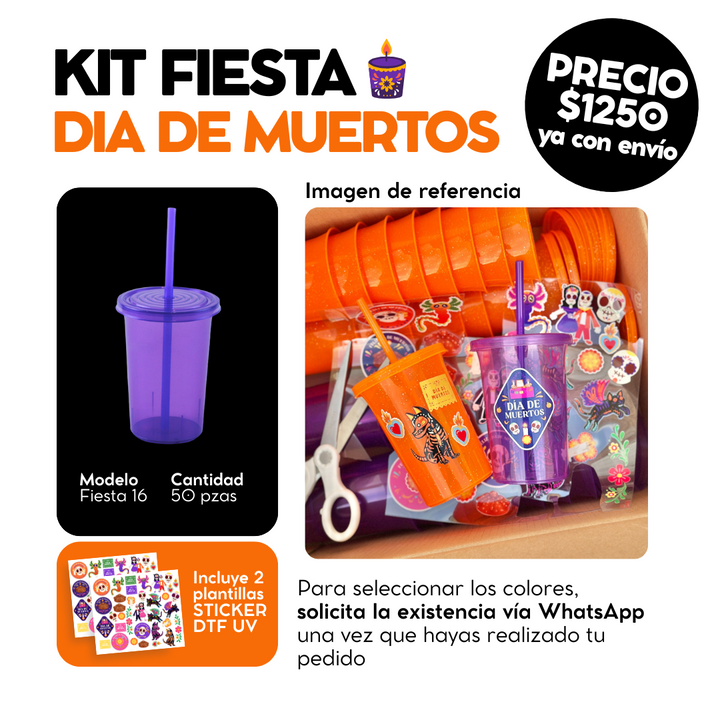 KIT FIESTA 16 oz DIA DE MUERTOS